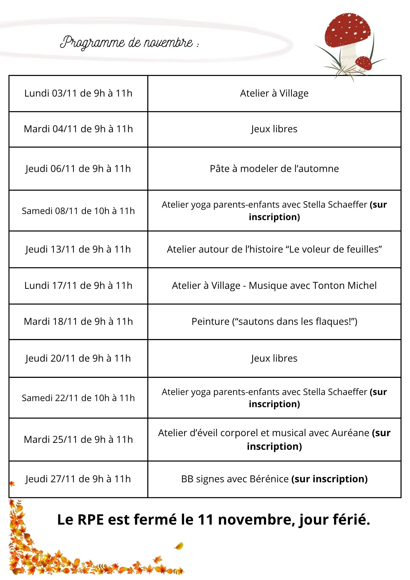 - partenaires actuels : Maud pour l'éveil musical (Contes & Harpe), Stella pour l'éveil corporel, Bérénice contes et comptines signées (communication gestuelle liée à la parole) et Mr Chefeuillu pour l'éveil sensoriel.