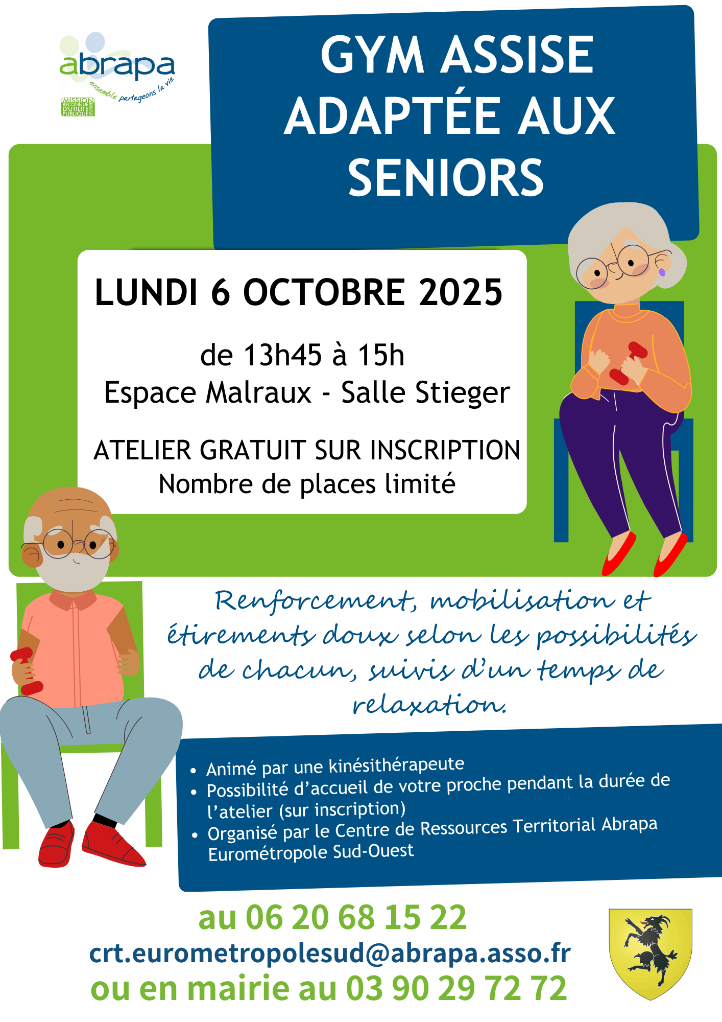 La Commune de Geispolsheim et l'Abrapa vous proposent un atelier séniors - Gym assise adaptée aux séniors.