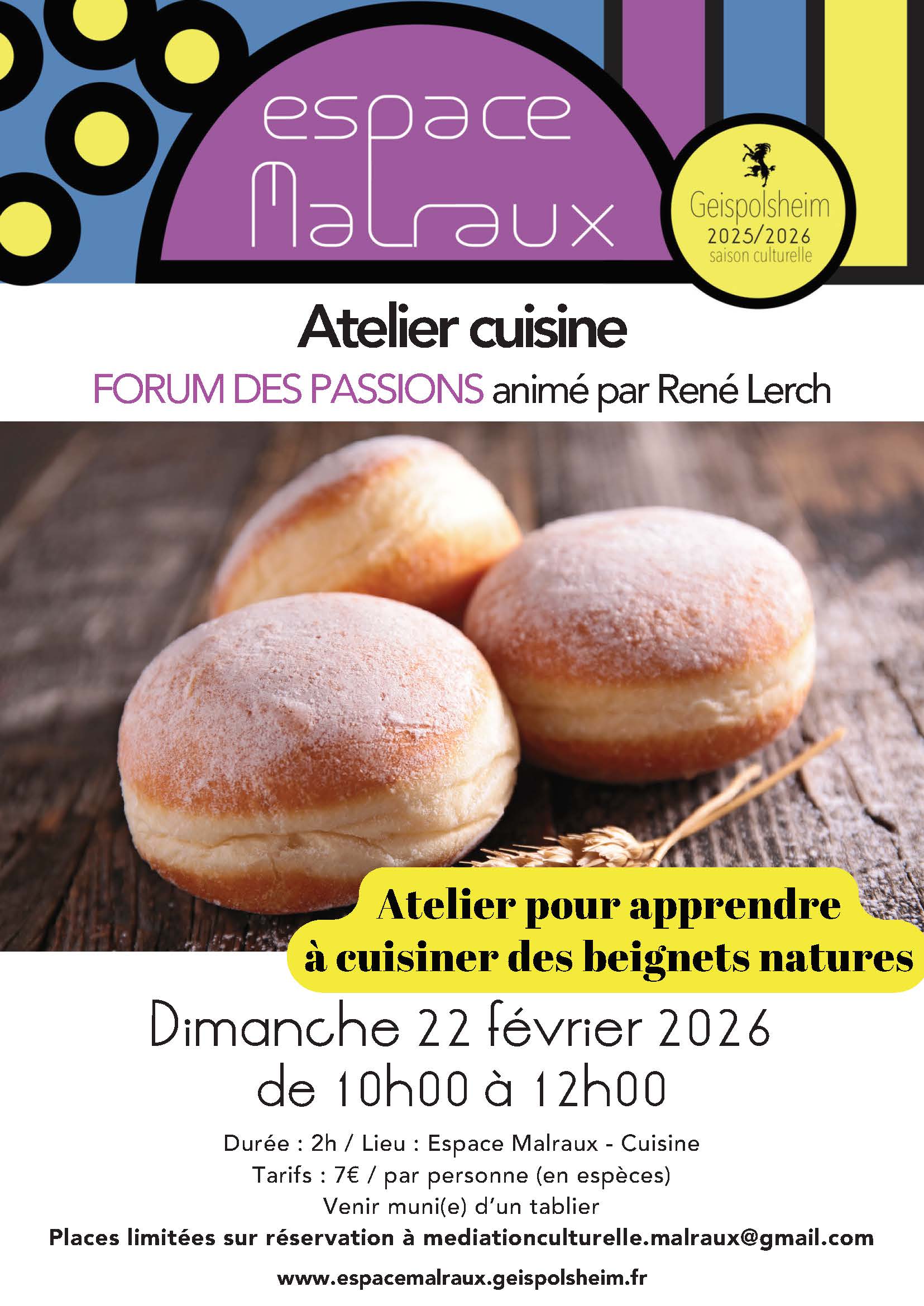 La Commune de Geispolsheim vous propose son forum des passions pour apprendre à cuisiner des beignets natures.