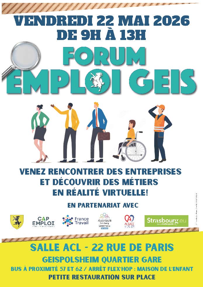 La Commune de Geispolsheim organise son Forum de l’emploi, en partenariat avec France Travail, la Mission locale Strasbourg Eurométropole, la Collectivité européenne d'Alsace et Cap Emploi.